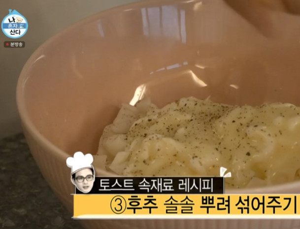 마지막으로 후추를 솔솔 뿌려 느끼한 맛을 잡아줍니다. 김지훈이 사용한 마요네즈와 연유는 하인즈 헤인즈 제품입니다.