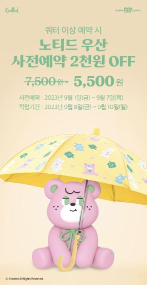 배스킨라빈스 노티드 우산 픽업 기간: 2023년 9월 8일 금요일 ~ 9월 10일 일요일