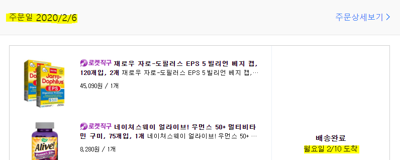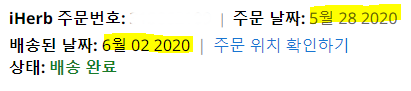 아이허브 먼저 아이허브. 위의 주문은 5일, 아래 주문은 4일이 소요 되었습니다.