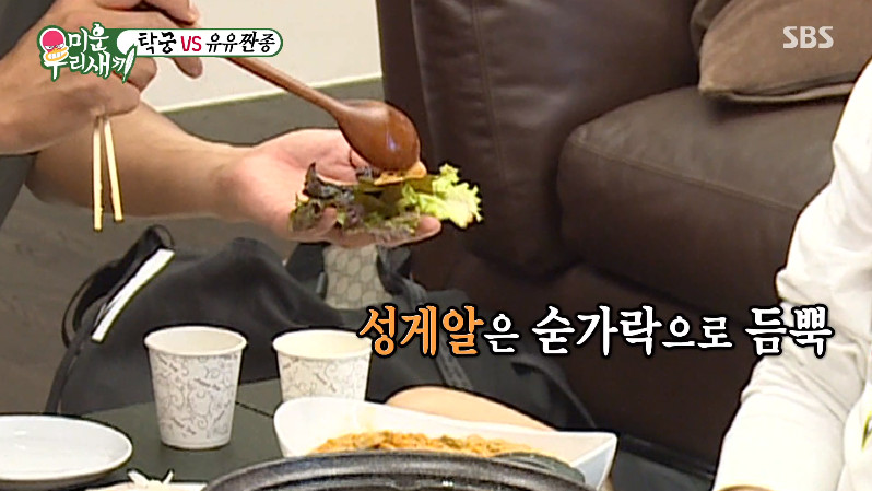 이때 탁재훈이 성게알을 맛있게 먹는 방법을 알려줬는데요, 성게알을 그냥 먹는 것보다 미역과 함께 먹으면 맛있다고 하더라고요!