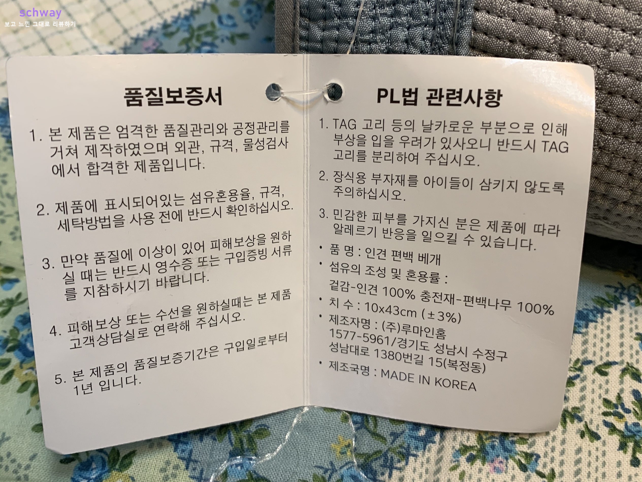 루마인홈이라는 국내 회사에서 만들었고 인견 100% 편백 100% 입니다.