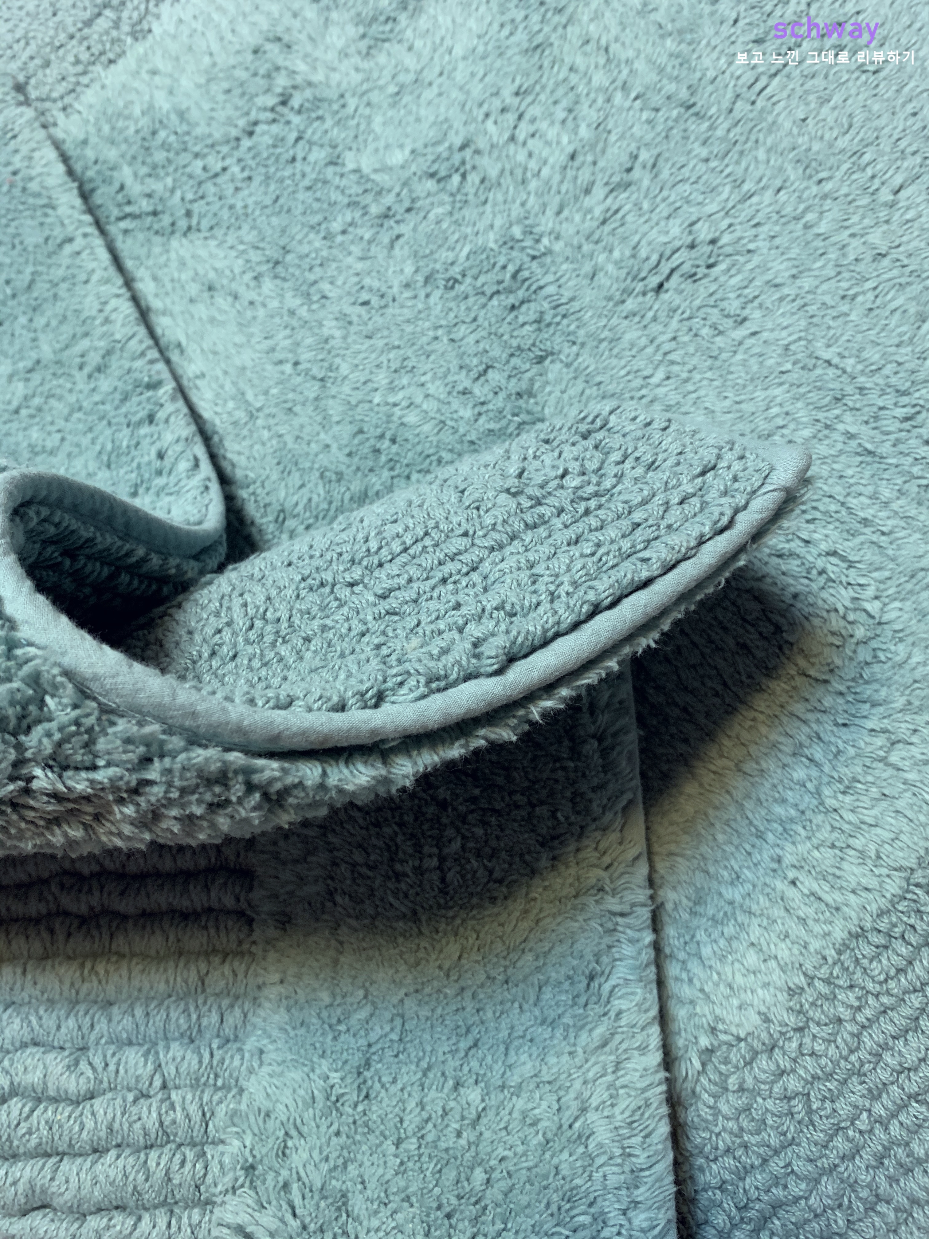 생각보다 굉장히 두툼하고 양면으로 쓸 수 있어서 실용적이라고 판단되어 구매했습니다. 앞뒤 색상은 실제로 똑같은데 사진은 좀 다르게 나왔네요.
