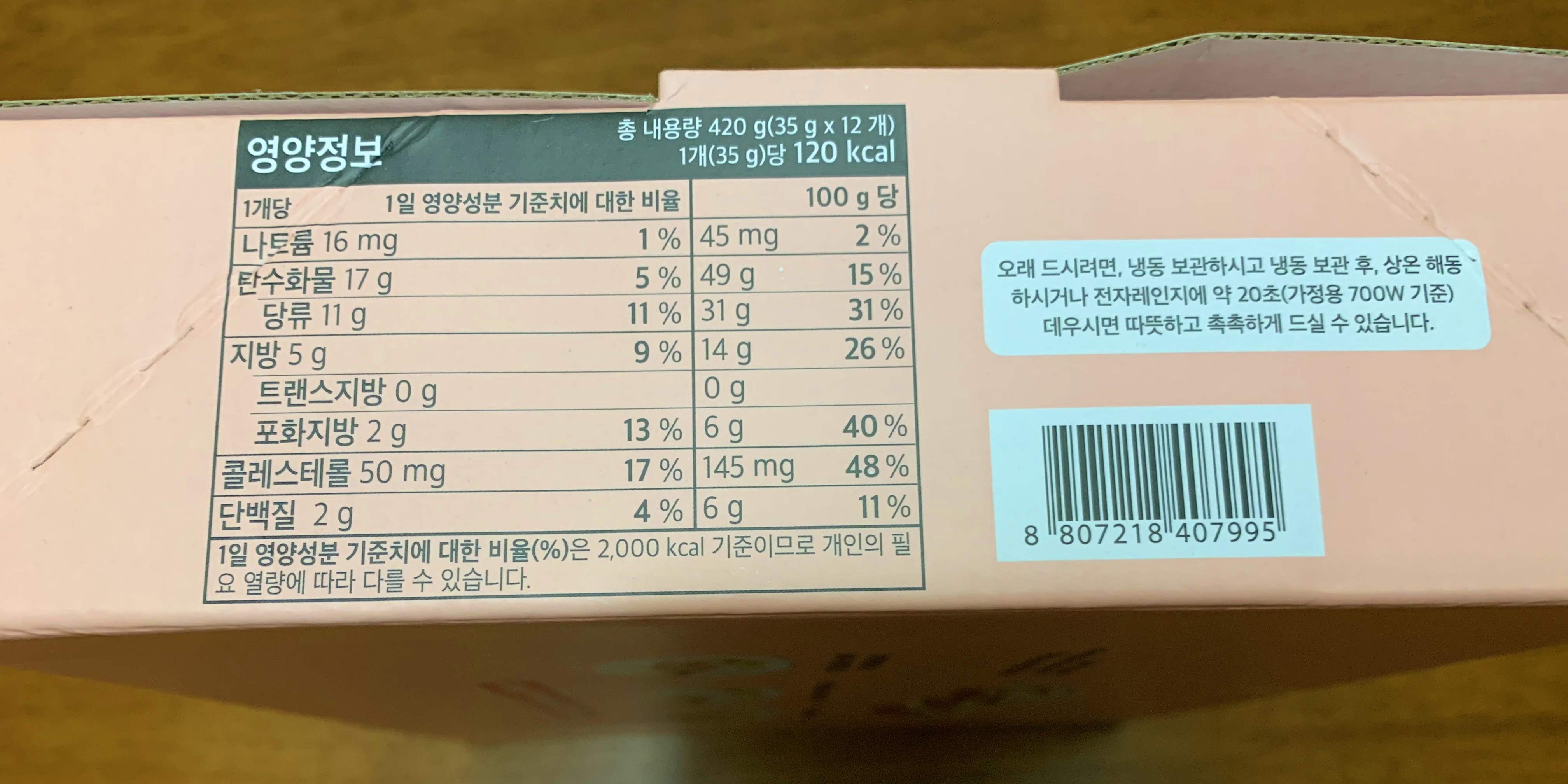 가격은 1박스에 7,490원으로 개당 600원이 조금 넘습니다. 크기가 정말 작아서 마트에서 판매하는 빵 치고는 조금 비싸다고 느껴질 수도 있습니다.