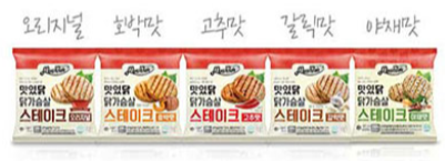 맛있닭 닭가슴살 스테이크 맛은 오리지널, 호박맛, 고추맛, 갈릭맛, 야채맛 이렇게 5가지로 구성되어 있습니다.