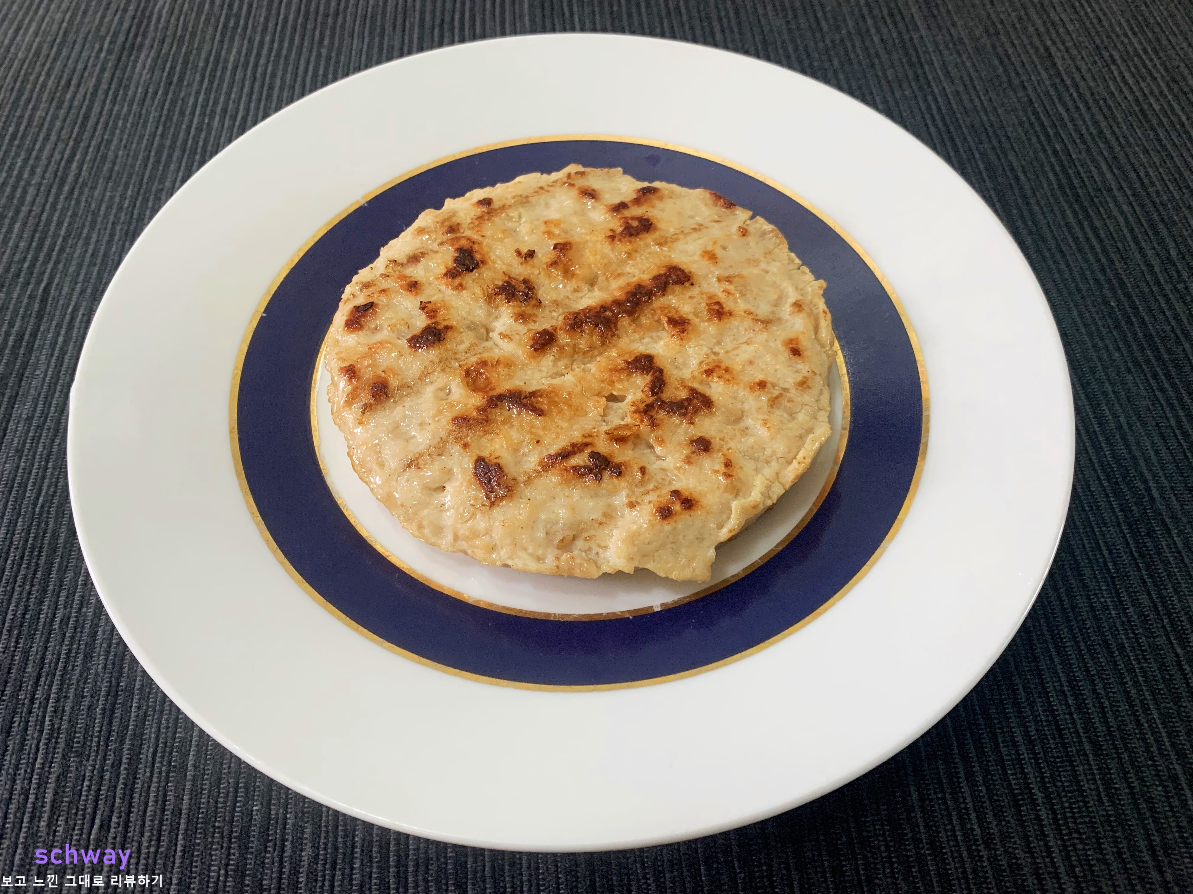 아니나 다를까 정말 맛이 없었습니다. 같은 제품이 맞나 싶을 정도로 프라이팬에 구워서 먹는 것과는 맛의 퀄리티가 정말 달랐어요. 완자를 찜기에 쪄 먹은 이상한 축축한 맛이랄까요.