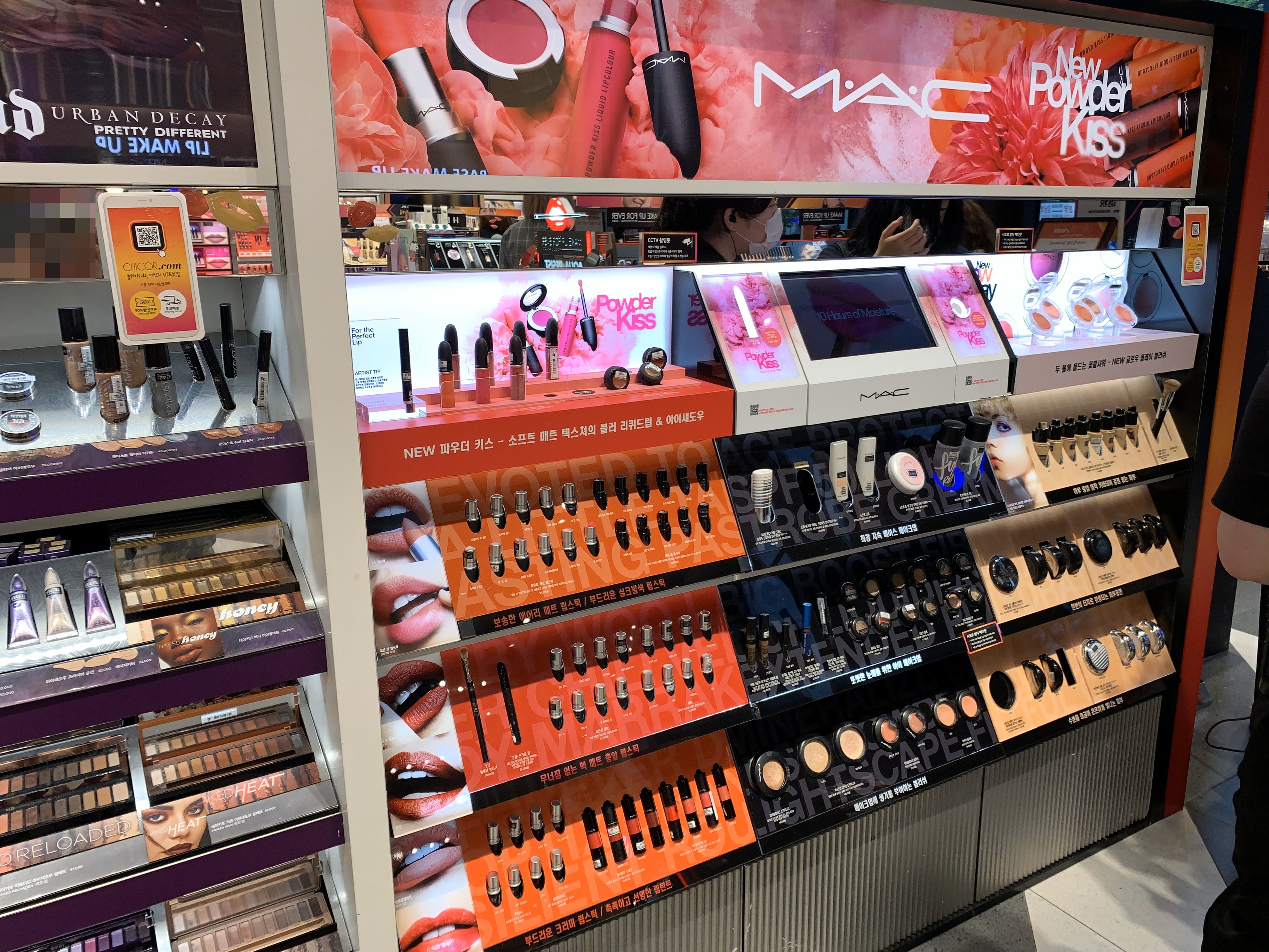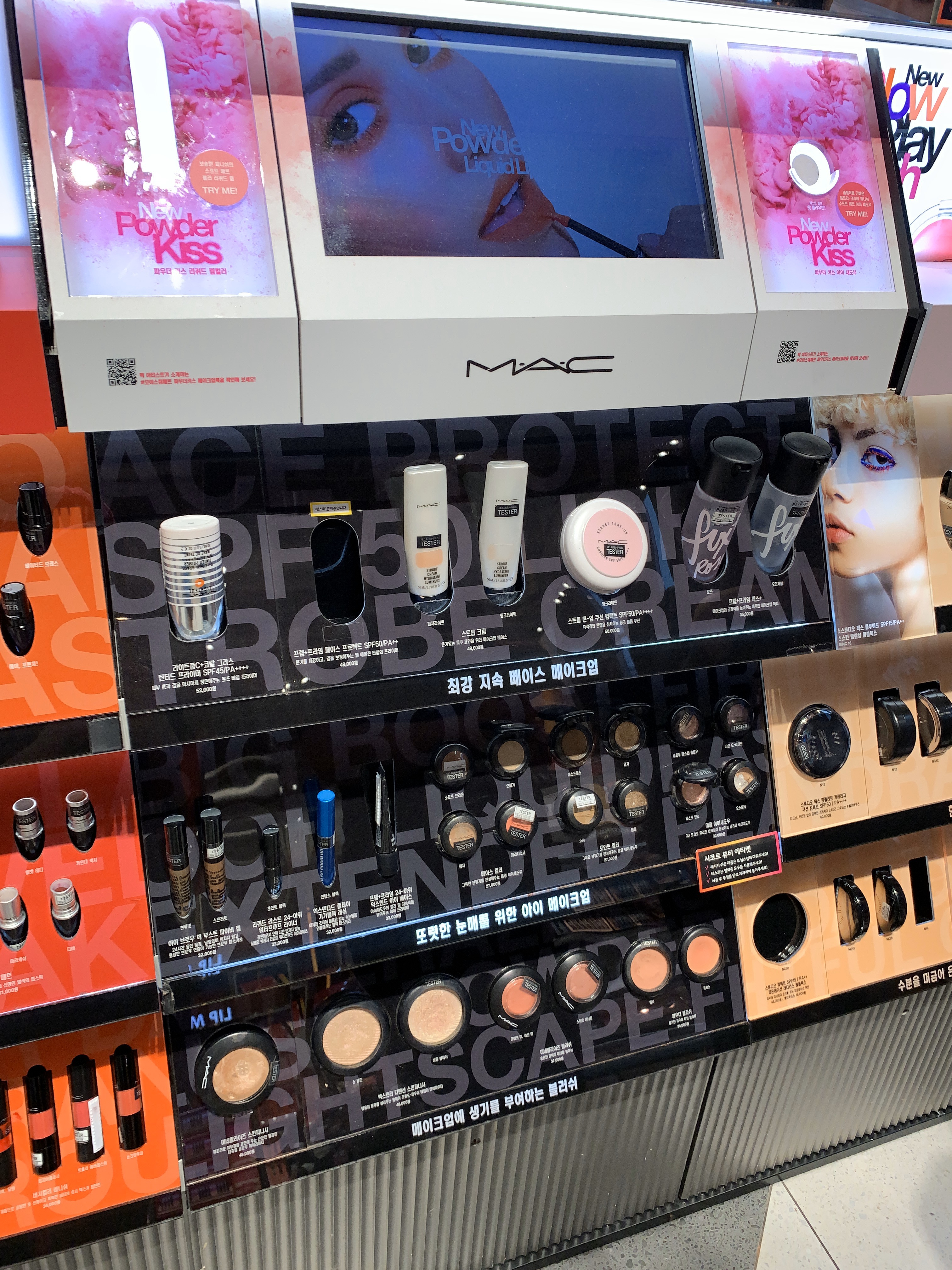 1층에 입장하면 바로 맥 화장품들이 보입니다. 메이크업에서 빠질 수 없는 브랜드답게 들어오자마자 바로 마주합니다.