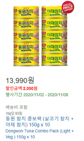 요리할 때 유용하게 쓰이는 살코기 참치와 밥반찬으로 좋은 야채 참치 콤보 세트를 묶어서 할인 상품으로 판매 중입니다.