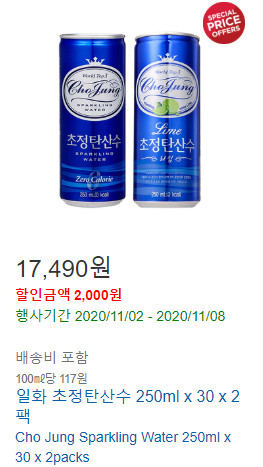 초정탄산수 개당 가격이 엄청 저렴합니다. 탄산수 좋아하시는 분들은 참고하시길 바랍니다.